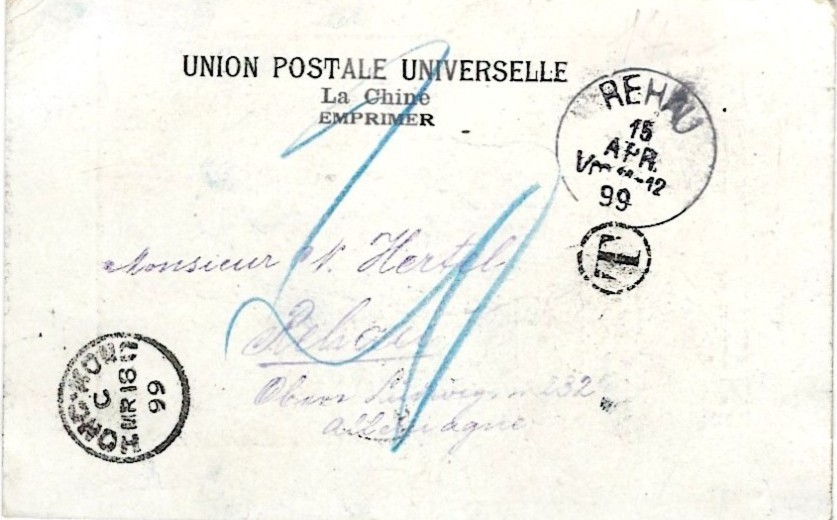 Hong Kong: 1937 ‘Compagnie Des Messageries Maritimes’ fold-out AIR FRANCE card flown from Paris from 1937 Exposition, to Brazil and United States and thence to Hong Kong franked 5c. and $1 KGV and 15c. Coronation.