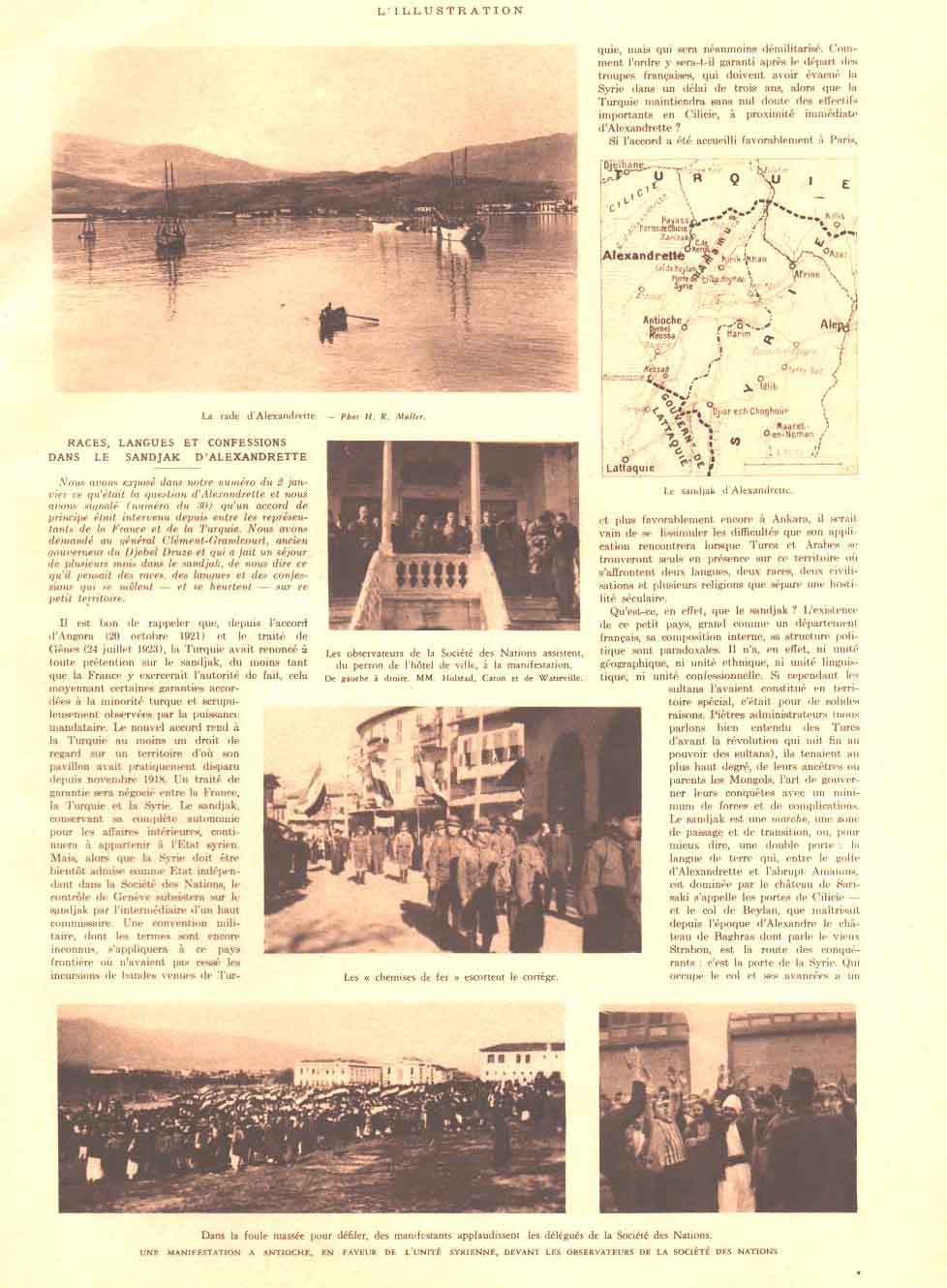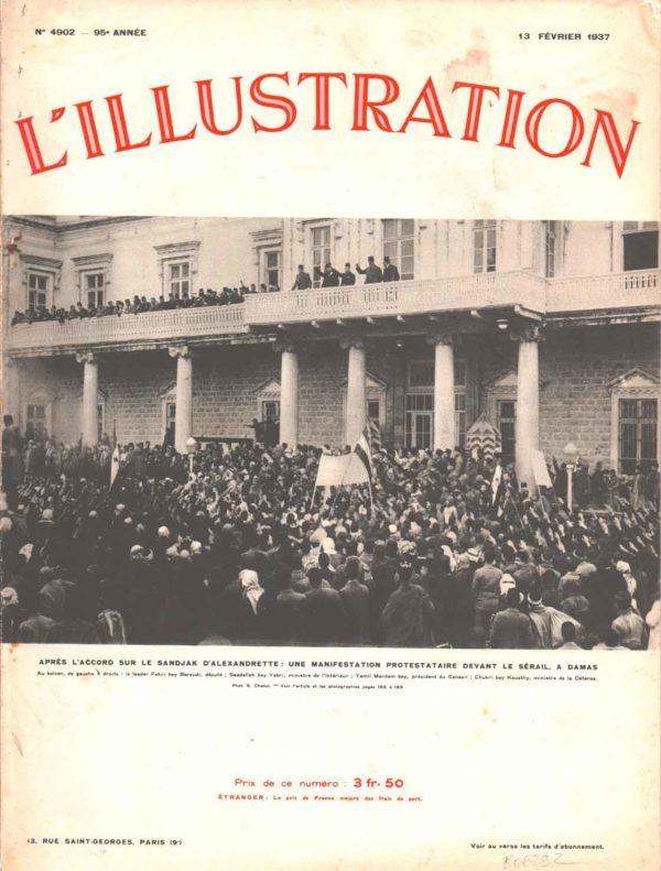Hatay – Alexandrette: 1937 (13 February). French L’Illustration magazine article about Sandjak Alexandrette with several photographs inside. 400 x 310 mm.