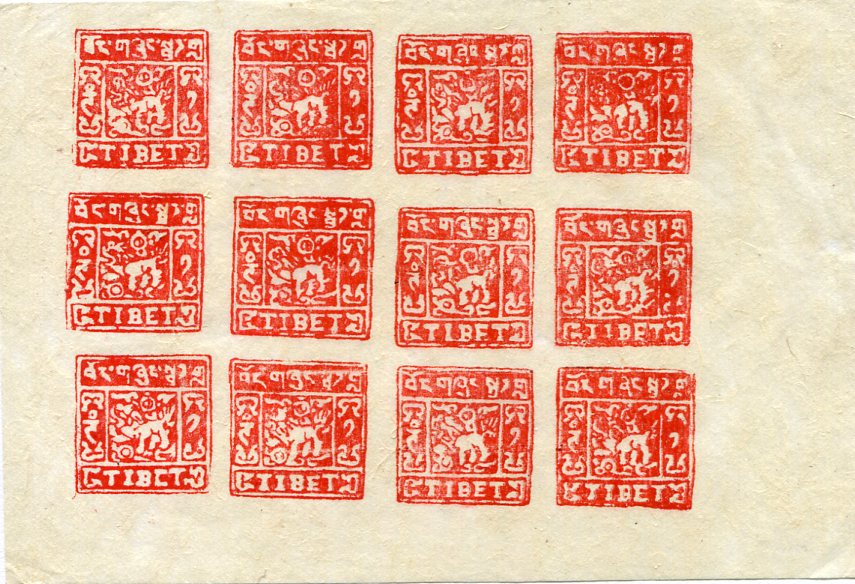 1938 Tibet 1t Sheetlet of 12 (*) sold as Forgery