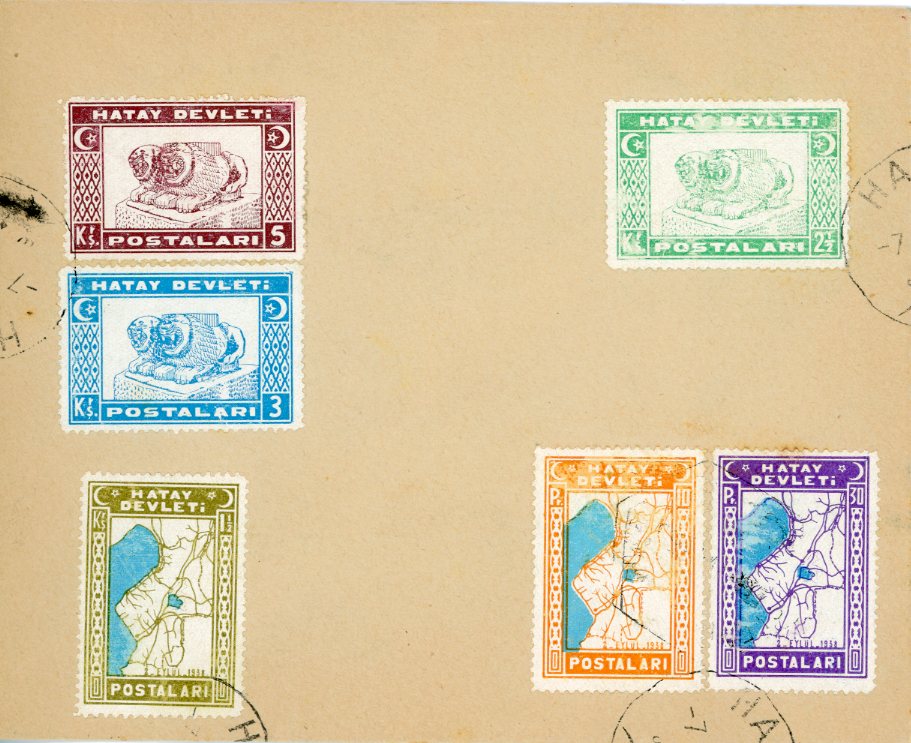 Hatay Republic: 1939 philatelic cover franked with Hatay State stamps by partial datestamps.