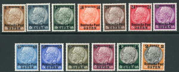 Poland – German Occupation: 1939 (1-4 December). Germany Hindenburg stamps surcharged with Swastikas mint o.g. set. Sg. 359/371 *