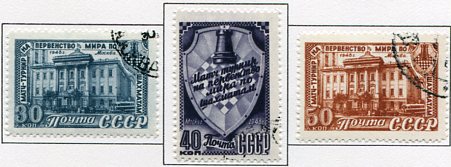 Russia – USSR: 1948 World Chess Championship used or CTO set of 3. Zagorsky 1246/1248