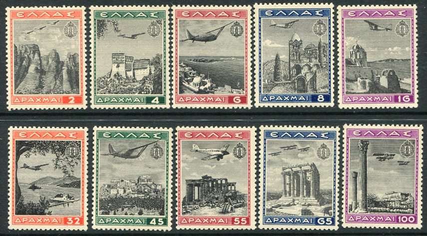 Greece: 1940 (3 August). National Youth Organization unmounted mint airmail set. Sg 544/553, Hellas A45/A54. **