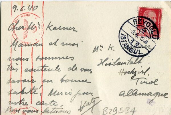 Türkiye: 1940 Istanbul photocard from Istanbul to Hochzirl, Austria (addressed as Germany after the invasion of Reich Army)