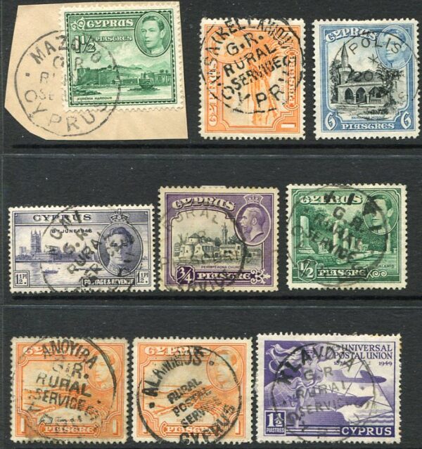 1940s Cyprus Rural Service of 9 stamps