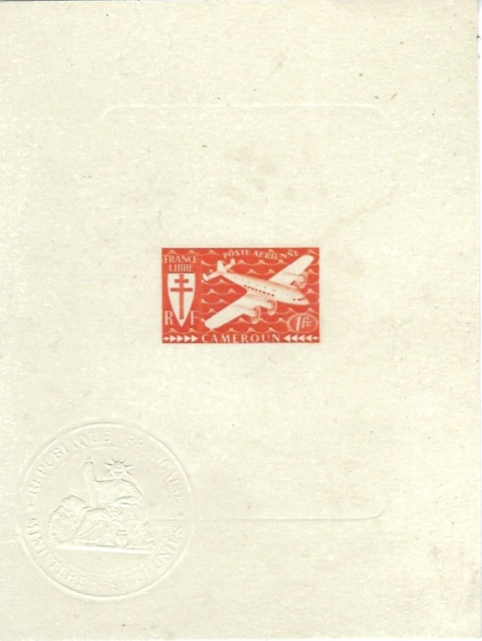 French Cameroun: 1941-42 France Libre airmail set of seven epreuves de luxe, fine condition.