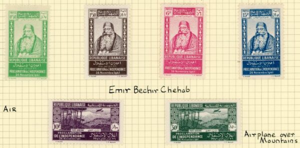 Lebanon: 1942 (18 September). Proclamation of Independence Emir Bechir Chehab portrait and airmail mint o.g. set. Sg. 252/257 *