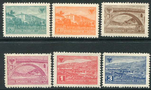 Albania: 1945 (28 November). Pictorials perf. 11 1/2 unmounted mint genuine set. Mi. 379/384, Sg. 429/734. **
