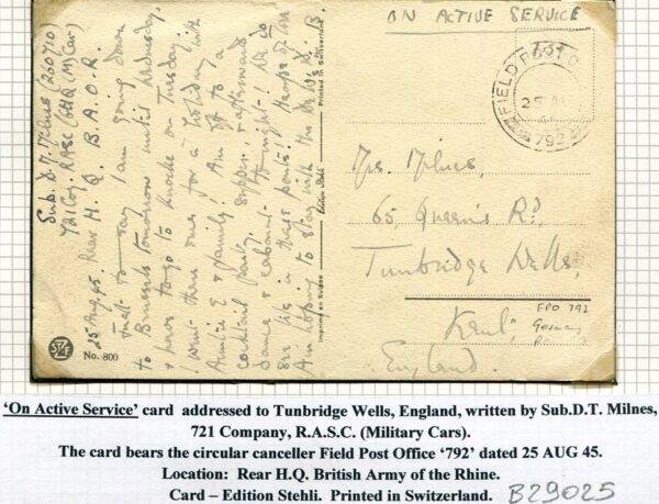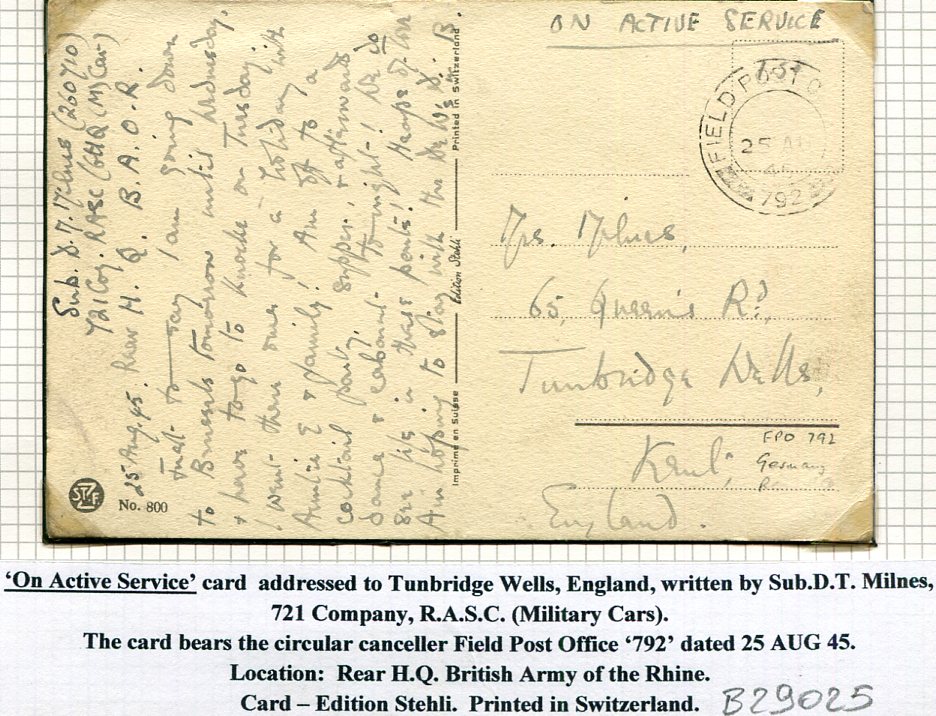 Great Britain: 1945 OAS card from FPO 792 in Rhine to Tunbridge Wells.