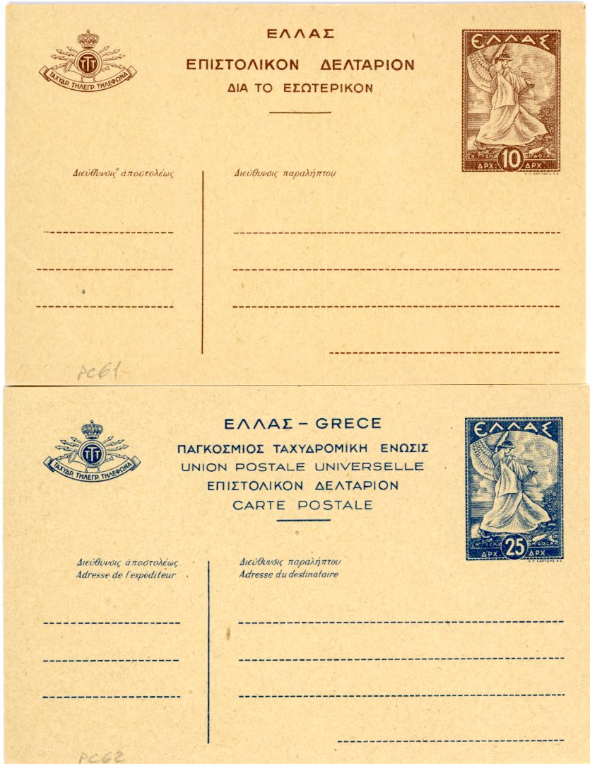 Greece: 1945 Glory 1st Issue unused set of two postal stationery cards. Karamitsos 61/62