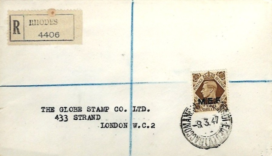 British Occupation of Italian Colonies: (Libya Cyrenaica) 1945 (12 Sep) commercial cover to Chicago bearing single franking M.E.F. 5d. tied bilingual Derna cds, reverse with bilingual Benghazi transit of 13 Sep; some creasing to envelope.