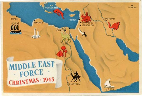 MEF Middle East Forces Christmas 1945 unused folded greeting card with pre-printed message.