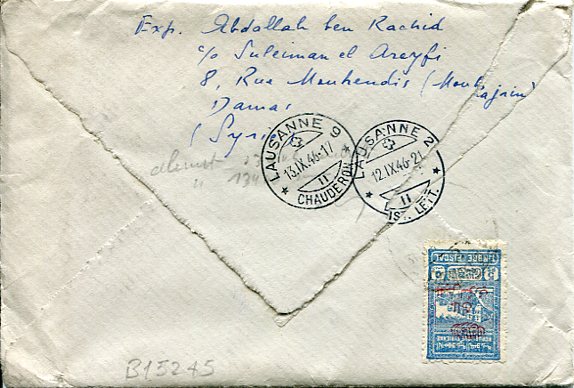 1946 Syria Registered Army Fund to Switzerland