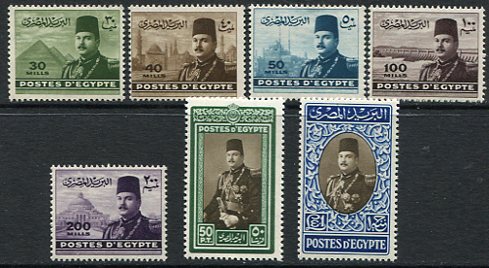 Egypt: 1947-51. King Farouk unmounted mint set. Sg. 340/346. **