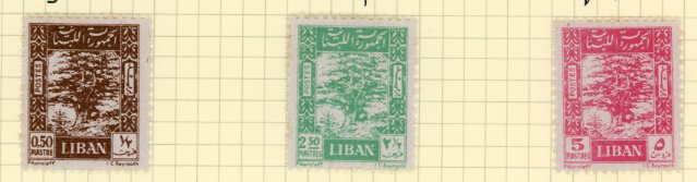 Lebanon: 1947 Cedar of Lebanon mint o.g. definitive set. Sg. 333a/333c *