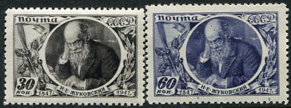 Russia – USSR: 1947 (17 January). Scientist Zhukovsky unmounted mint set. Mi. 1083/1084, Sg. 1232/1233, Zagor. 1013/1014