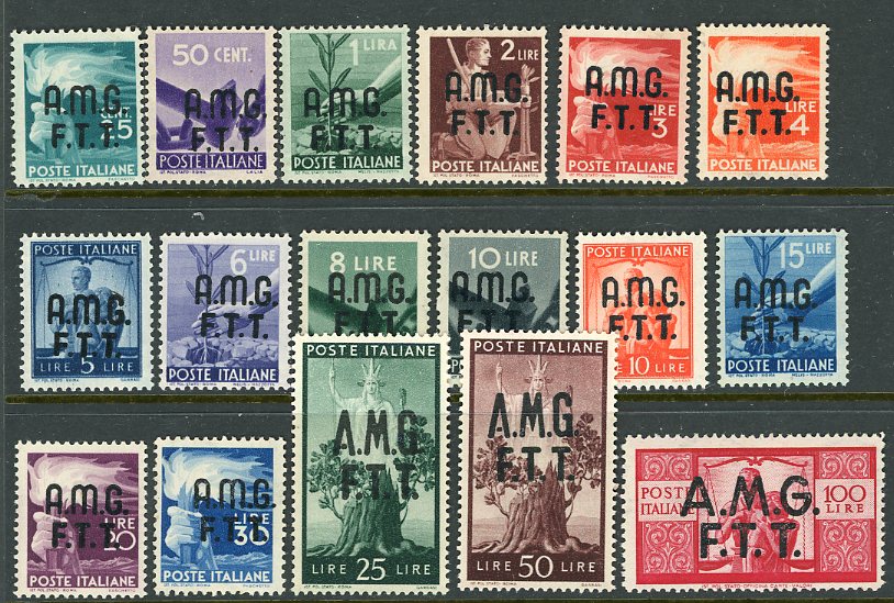 Trieste – Zone A – Allied Military Government: 1947 -48 stamps of Italy overprinted unmounted mint set of 17. Sg. 1/17 **