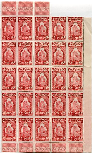 Yemen: 1947 Sana’a Palace pictorial 4b scarlet unmounted mint pane of 25. Sg. 61