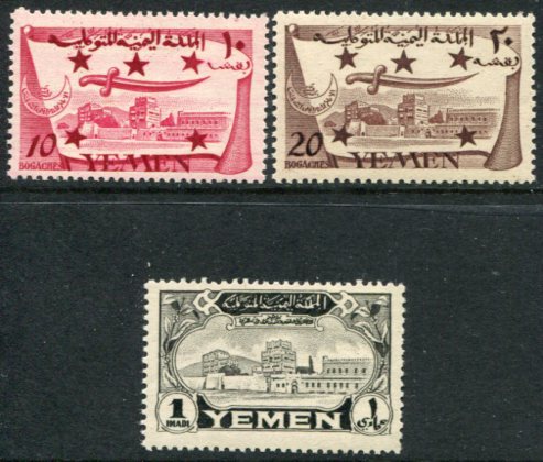 Yemen: 1947 unissued sword and building unmounted mint set. Mi. I/III. **