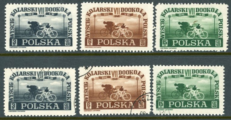 Poland: 1948 (22 June). Seventh Circuit of Poland Cycle Race mint o.g. and used sets. Sg. 616/618. *