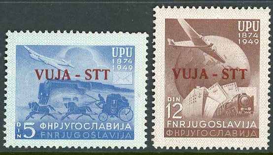 Trieste – Zone B – Yugoslav Military Government: 1949 UPU Anniversary mint o.g. set. Flowing overprint on 12d variety. Sg. B24/B25 *