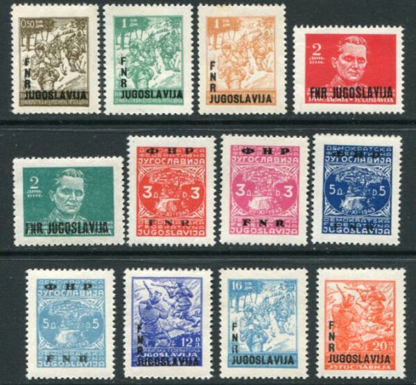 Yugoslavia: 1949-50 FNR surcharged unmounted mint set. Mi. 590/597, Sg. 619/630. **