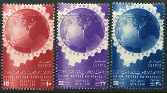 Egypt: 1949 (9 October). UPU Anniversary unmounted mint set. Sg. 359/361. **