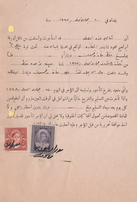 Iraq: 1949 document franked with 50f and 100f of King Faisal II revenue stamps. Ross & Powell 185, 203