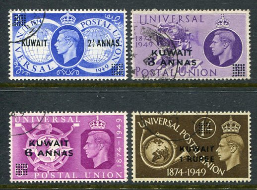 Kuwait: 1949 (10 October). 75th Anniversary of UPU surcharged used set. Sg. 80/83