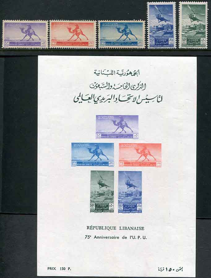 Lebanon: 1949 (16 August). 75th Anniversary of Universal Postal Union mint o.g. miniature sheet. Sg. MS393a
