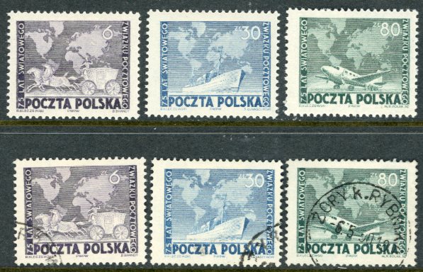Poland: 1949 (10 October). UPU Anniversary mint o.g. and used sets. Sg. 652/654. *