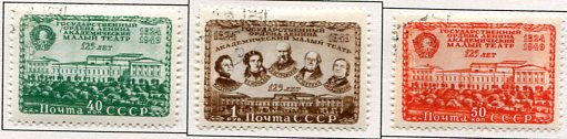 Russia – USSR: 1949 Moscow Maliy Theatre used or CTO set of 3. Zagorsky 1357/1359