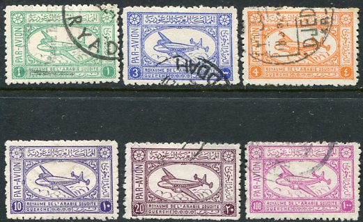 Saudi Arabia: 1949 (1 October). Airliners used set. Mi. 29/34, Sg. 357/362