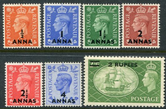 British Postal Agencies in Eastern Arabia: 1950-55 stamps of KGVI surcharged unmounted mint set. Sg. 35/41. **