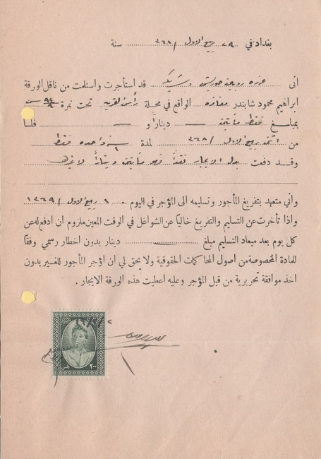 Iraq: 1950 document franked with 200f of King Faisal II revenue stamps. Ross & Powell 203