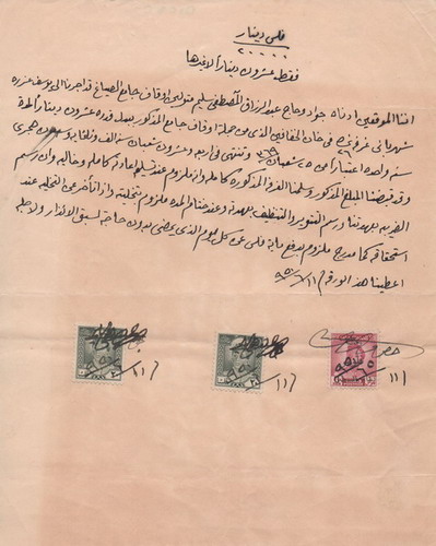 Iraq: 1950 document franked with two 20f boy King Faisal II revenue and 6f postage stamps. Ross & Powell 196 – Sg. 278