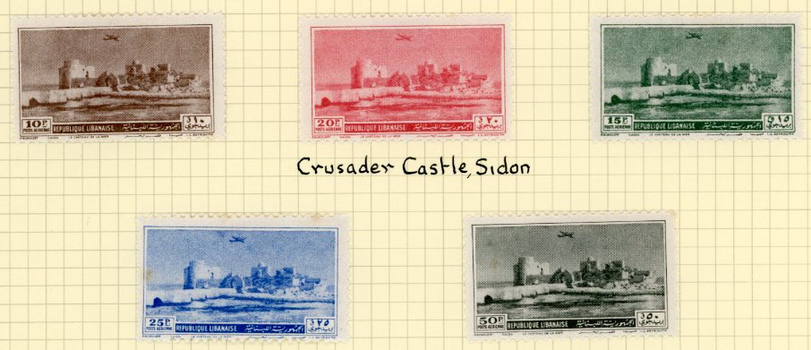 Lebanon: 1950 (8 September). Sidon Crusader Castle airmail mint o.g. set. 25p faults. Sg. 416/421 *