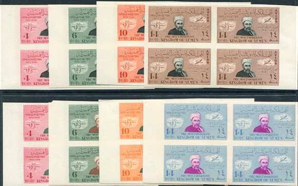 Yemen Kingdom: 1950 (1 March). Unissued UPU Universal Postal Union imperf. unmounted mint block of four set. Mi. 114B/121B
