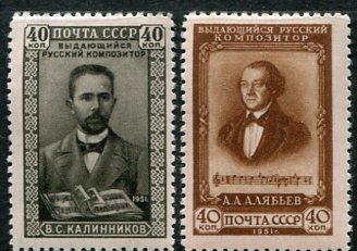 Russia – USSR: 1951 (28 August). Composers Kalinnikov and Alyabev mint o.g. set. Mi. 1591/1592, Sg. 1723/1724, Zagor. 1556/1557