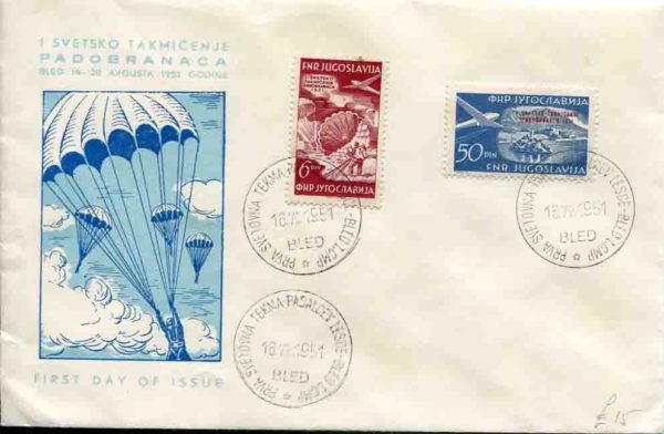 Yugoslavia: 1951 (16 August). First World Parachute Jumping Championships, Bled first day cover.