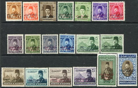 Egypt: 1952 (17 January). King of Egypt and Sudan overprinted issue unmounted mint set of 19. Sg. 373/391. **
