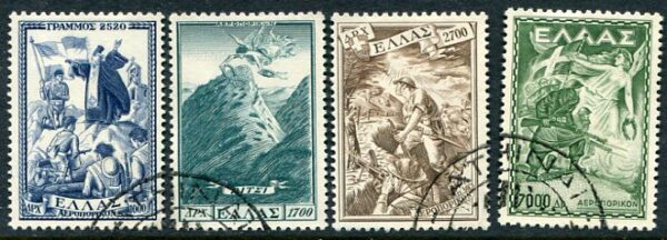 Greece: 1952 (29 August). Grammos – Vitsi. Anti Communist Campaign used airmail set. Sg 698/701, Hellas A67/A70.