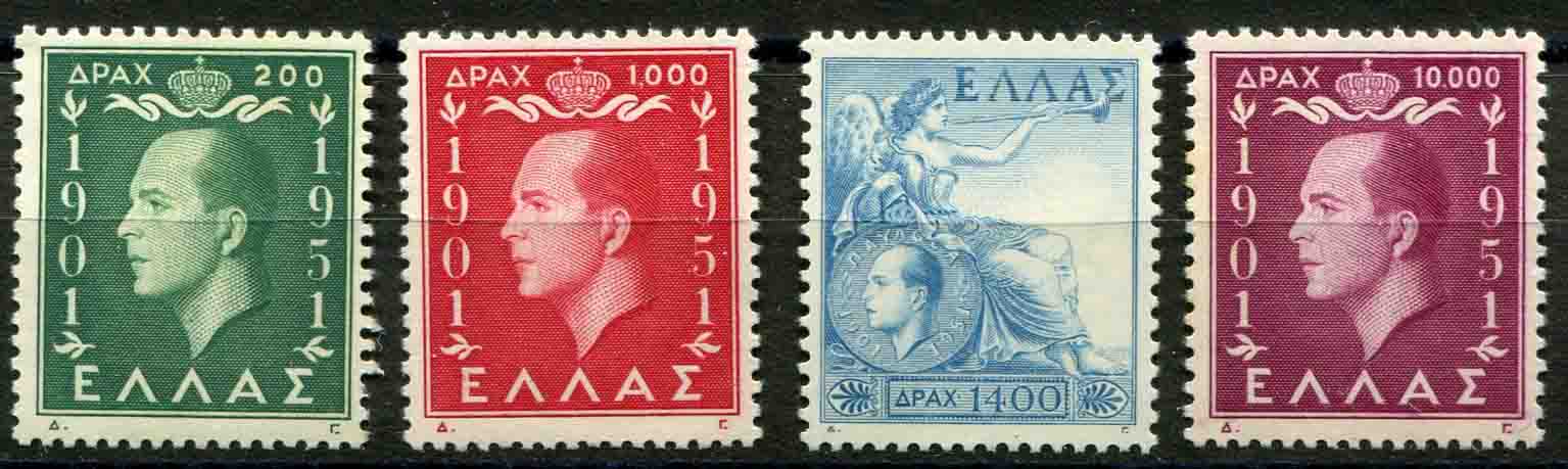 Greece: 1952 (14 Dec). Royal Birthday unmounted mint definitive set. Hellas 718/721
