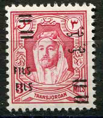 Jordan: 1952 (26 Feb). Overprinted on 1943-47 issues watermark Mult Script CA 3f. on 3m. carmine pink unmounted mint o.g with overprint double error. SG 316a