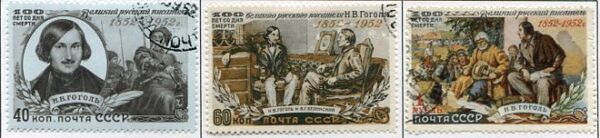 Russia – USSR: 1952 Death Centenary of N.V. Gogol used or CTO set of 3. Zagorsky 1587/1589