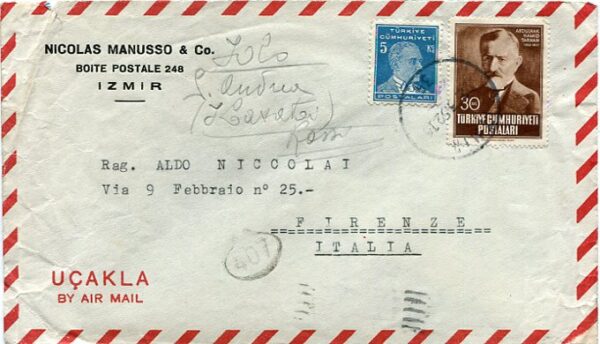 1952 Turkey Izmir Writer Tarhan to Italy