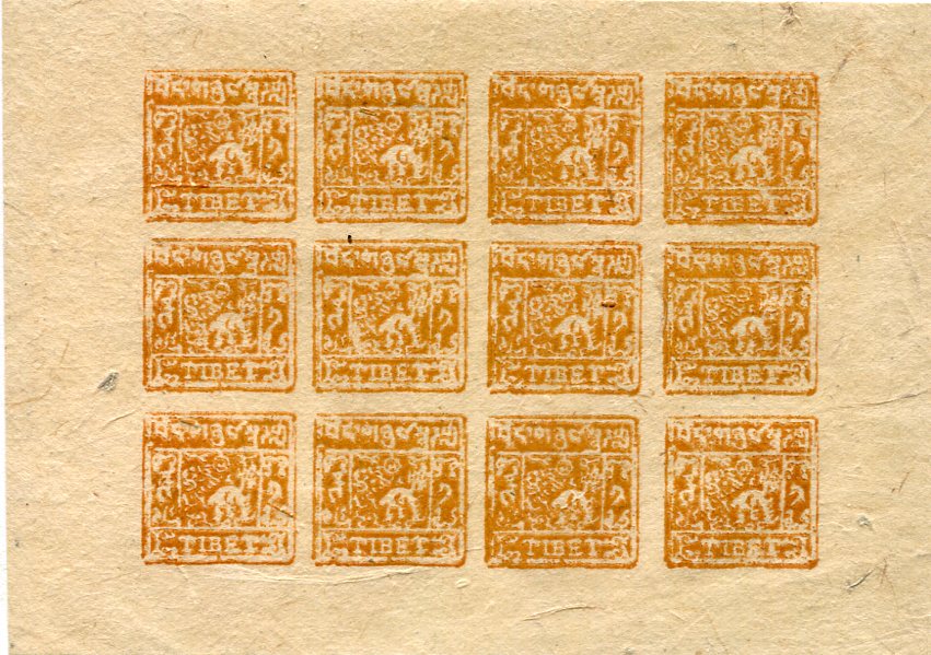 1954 Tibet 1t Sheetlet of 12 (*) sold as Forgery quantity
