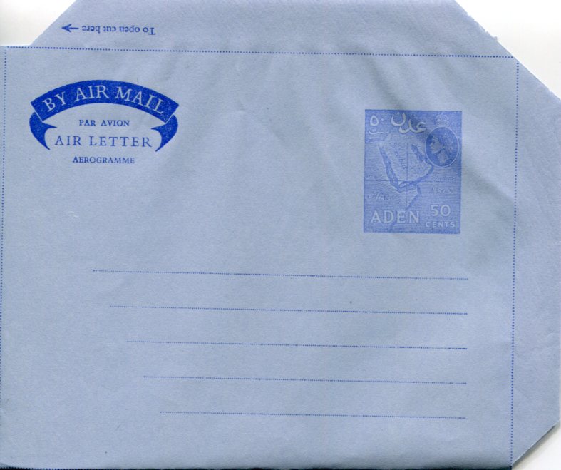 Aden: 1955 QEII 50c map design unused folded complete aerogramme.
