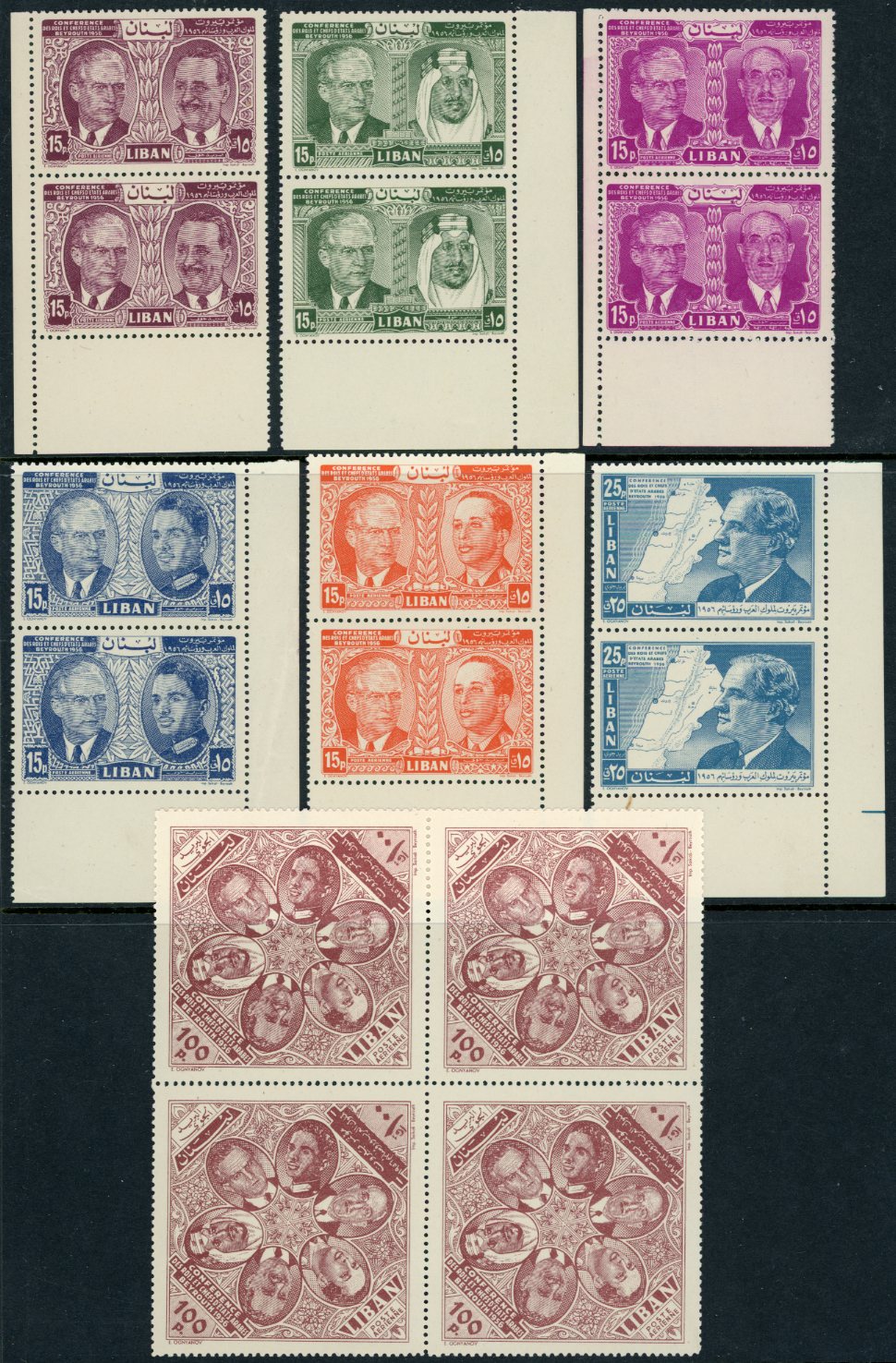 Lebanon: 1957 Arab Leaders Conference unmounted mint pair set (100p. block of four). Sg. 571/577 **