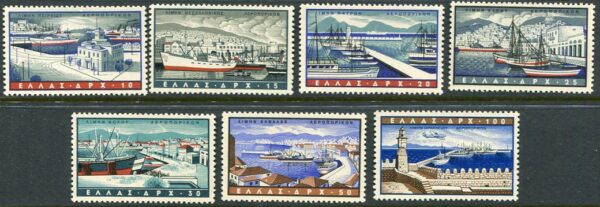Greece: 1958 (1 July). Harbours, Ports airmail unmounted mint set. Sg. 784/790, Hellas A74/A80. **